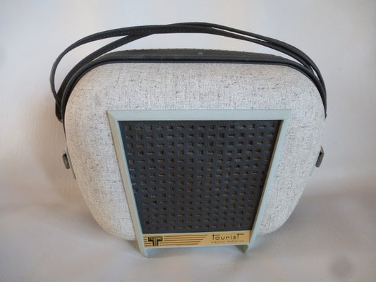Teppaz Tourist gray and mottled electrophone, batteries/mains