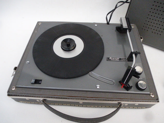 Electrophone de chez Brandt Clarville équipé d'une platine à changeur automatique de type C290, deux vitesses 33 et 45 tours. Il est équipé de la cellule Pathé Melodyne MCS